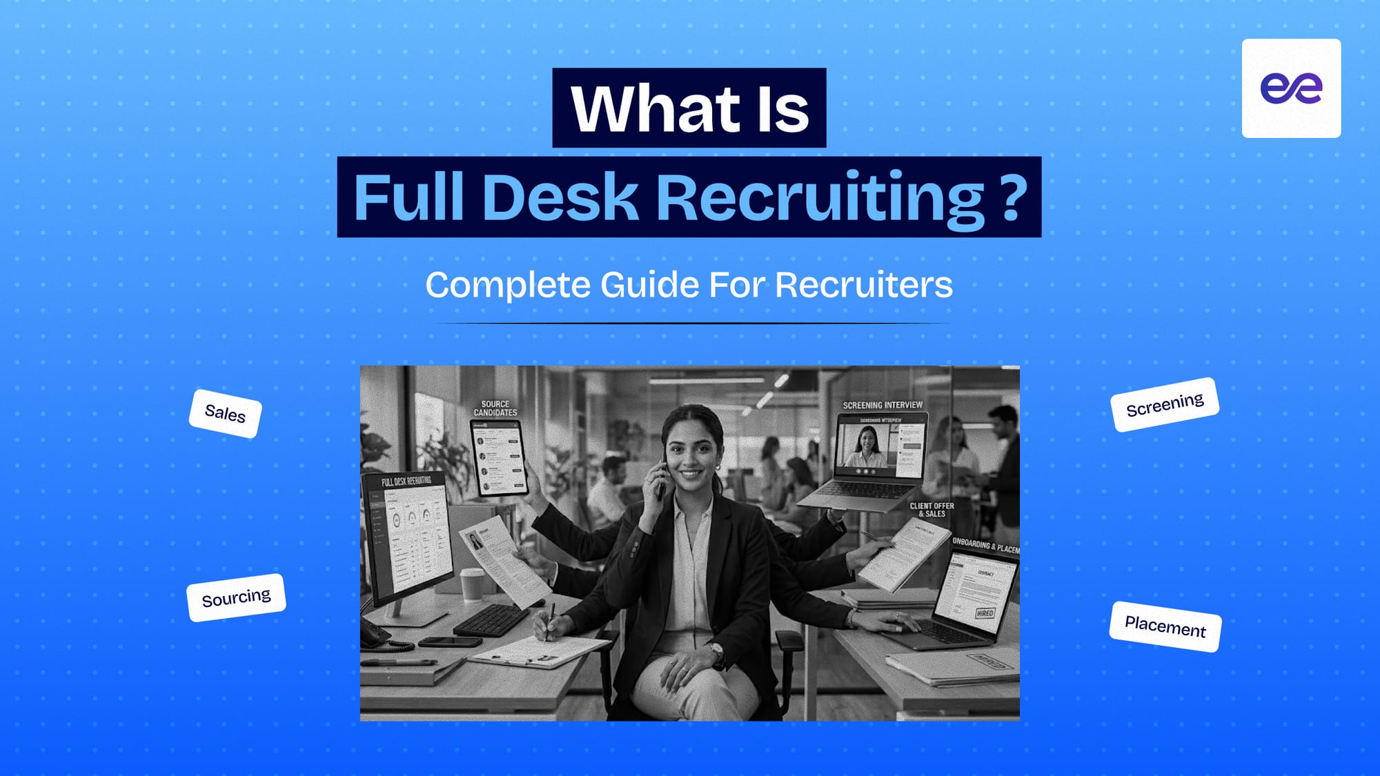 In simple terms, full desk recruiting is an end-to-end recruiting model where one person handles sales, sourcing, screening, and placement without relying on multiple teams.